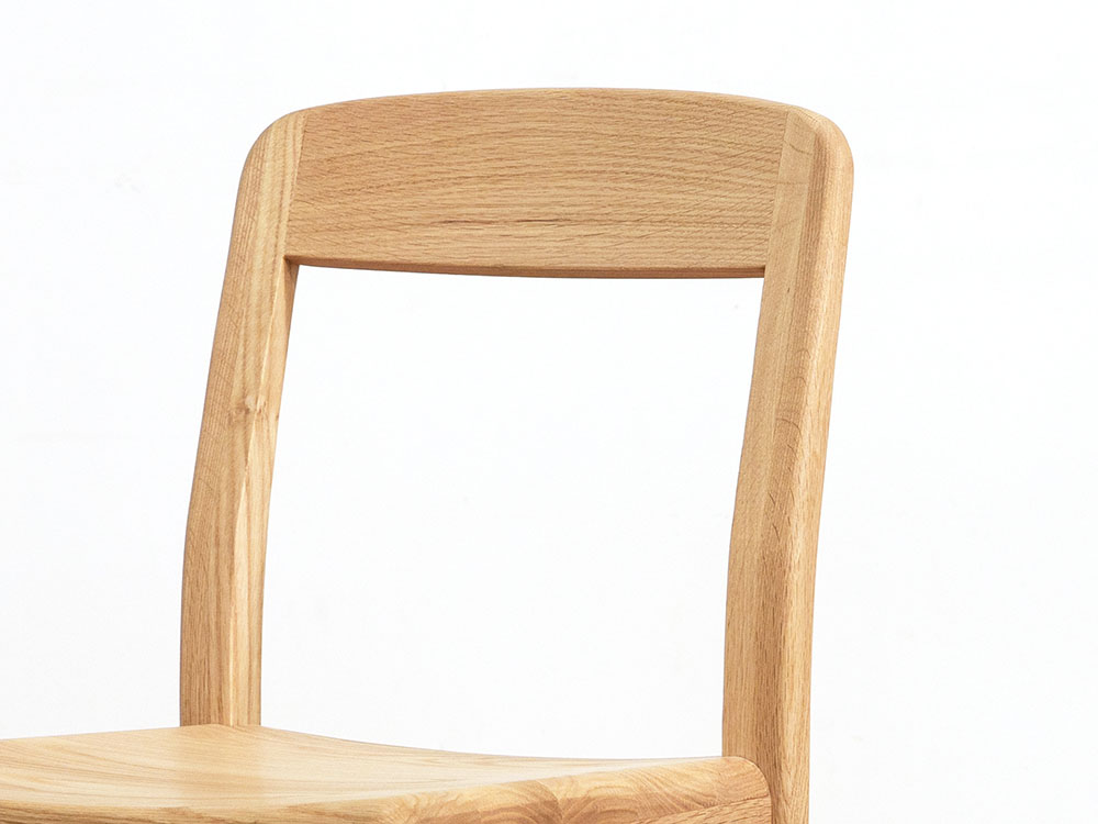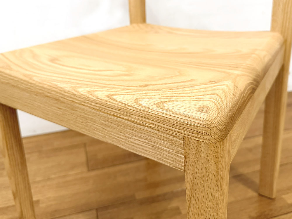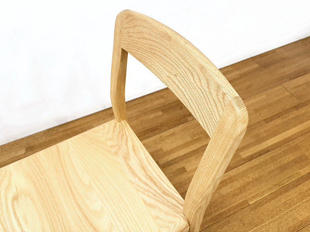 角を丸く削って整えた、優しい背もたれは背中が程よくフィットするように、ゆるやかなカーブがついています。