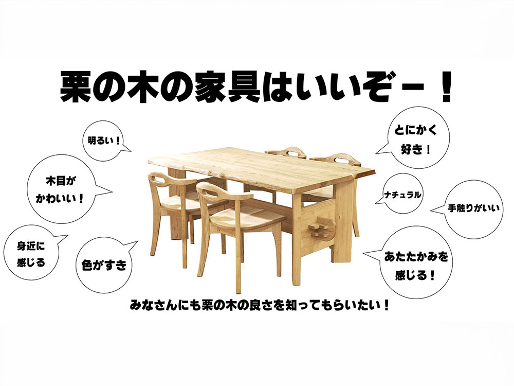 「栗の木の経年変化がとっても素敵なお話」コラムをアップしました。 2026.02.22 栗の木の経年変化の仕方をコラムでご紹介しています。 下記の画像をクリックして、ぜひのぞいてみてくださいね。 より多くのみなさんに、栗の木の魅力を知っていただけると幸いです! よろしくお願いいたします。