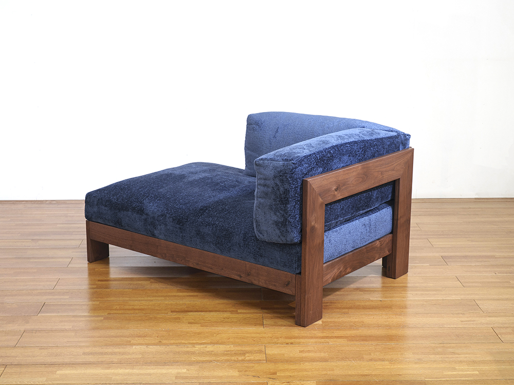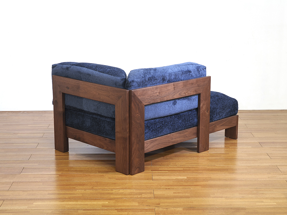 ゆえに形はとてもシンプル。木部の上質感&価値観を強調しています。クッションには密度の高い高級ウレタンフォームを2層、さらにその上に羽毛とポリエステル綿を混合したもので包んだ、「むにっと」「ふわっと」「しっかりと」、ものすごくこだわって作られています。
