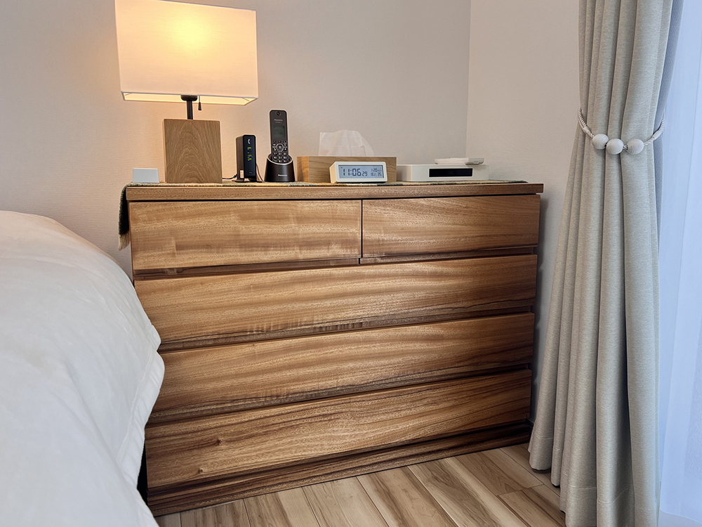 お二人の寝室は楠の家具で心地よい空間に。