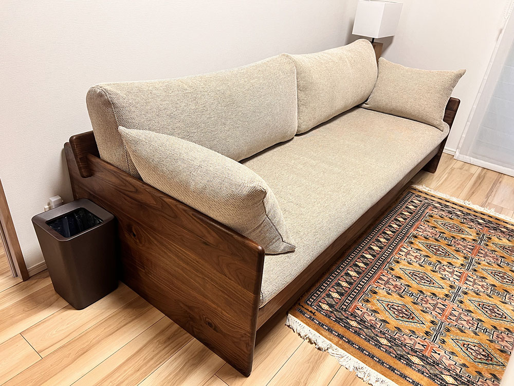 納品時はこのベッドのみお求めいただいたのですが、その後、下の写真のように脚をのせたりできる